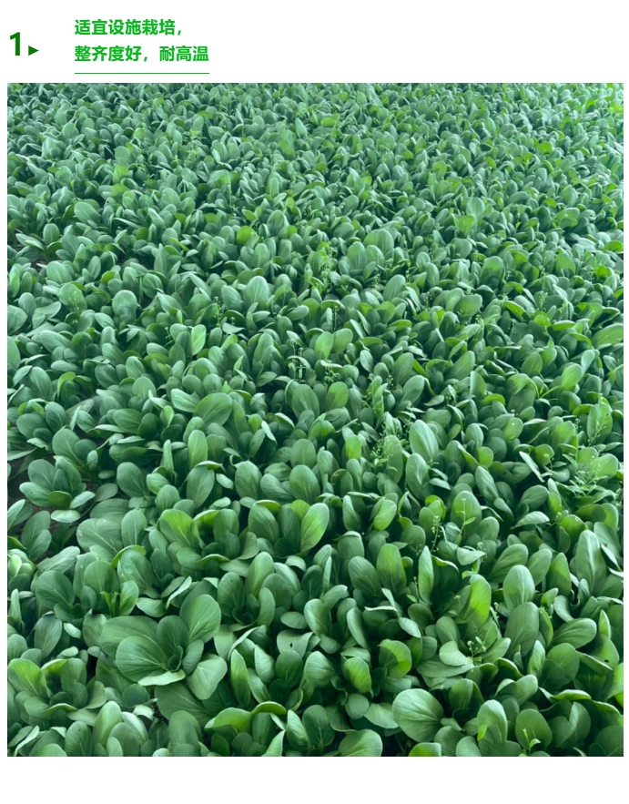 設(shè)施栽培首先品種“國夏3號(hào) ” 是京研種業(yè)育成的雜交一代青梗菜品種。植株長勢(shì)較旺,株型