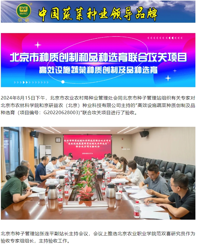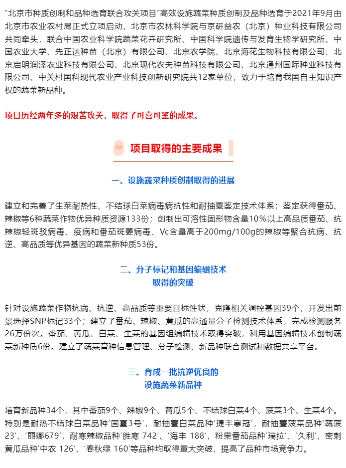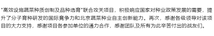 北京市農林科學院與京研種業,將再接再厲以創制和培育更多優質、多抗、豐產的蔬菜品種