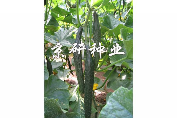 植株長(zhǎng)勢(shì)強(qiáng),葉片大小中等。強(qiáng)雌,極早熟,膨瓜速度快,連續(xù)座瓜能力強(qiáng)。耐低溫弱光及耐熱性能突出。耐霜霉病、白粉病和枯萎病。商品性好,瓜把短粗,瓜條順直,皮色深綠,半油亮,蠟粉淺,無(wú)棱,刺瘤中,瓜長(zhǎng)35-40cm,單瓜重200g左右,綠肉,質(zhì)脆、味甜、清香。生長(zhǎng)期長(zhǎng),豐產(chǎn)潛力大,適宜春秋大棚嫁接栽培。
