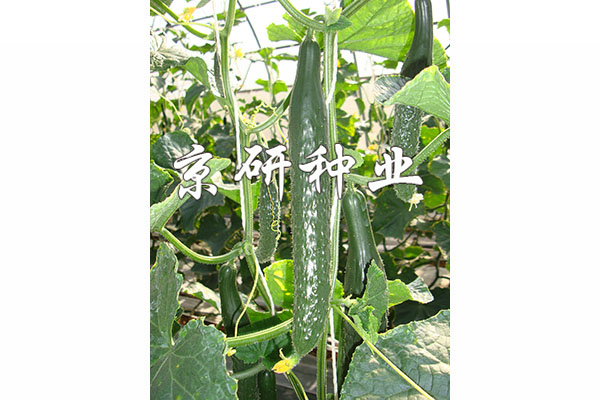 適宜春、夏、秋露地種植,兼做春秋大棚種植。早熟,生長勢較強,不易早衰,耐熱性強。主蔓結瓜型,瓜條順直,膨瓜速度快,瓜長36—38厘米,把短,外皮油亮綠,刺瘤適中,瓤色淺綠,風味濃,肉質脆,綜合抗病性強。華北地區露地種植3月底至4月初播種育苗,苗齡30天即可定植,也可以在5月1日前后直播,畝種植3500株左右。秋大棚栽培可在7月中下旬直播。