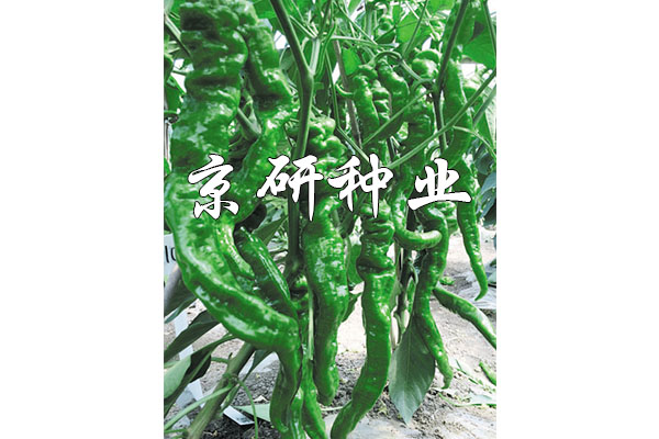 中早熟一代雜交種,株型緊湊,持續坐果能力強;膨果速度快;上下果實差異小。果實長羊角形,果實基部褶皺重,果型其他部分順直(微擰)。青熟果綠色,果實縱徑26-33cm,橫徑3.8-4.5 cm,肉厚0.35cm,單果重90-150g;辣味強,口感佳,耐貯運,抗病能力較強。適宜南北方保護地及露地種植。