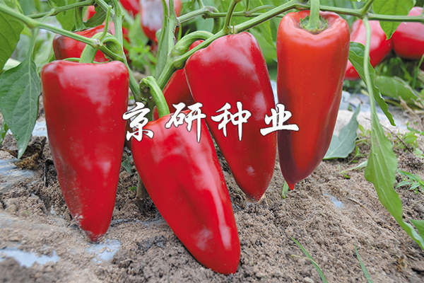 北京市蔬菜研究中心最新育成,屬中熟偏晚辣椒一代雜交種,果實(shí)圓錐形,果長(zhǎng)15-18cm左右,肩寬4.8-5.3cm,肉厚0.4cm5左右,單果重量130-150g左右,青熟期成熟果深綠色,果實(shí)老熟期暗紅色,味辣,品質(zhì)佳。適宜云南、四川、貴州等地大棚、露地種植。