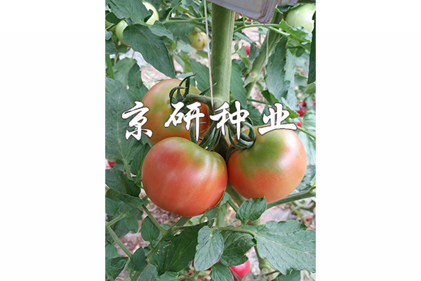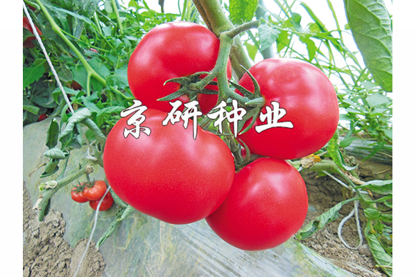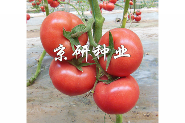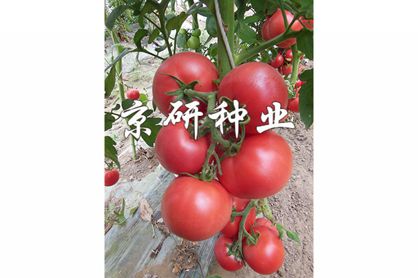 粉果番茄雜交種,中熟,無限生長型,粉紅色大果,果實圓形,略有棱,每穗坐果數3-5個,平均單果重350克,單果能達600克,穩產豐產。具有抗番茄黃化曲葉病毒病Ty1和Ty3a基因位點、抗根結線蟲病Mi基因位點,適合春秋保護地種植。栽培管理同常規,每穗3個果為宜。