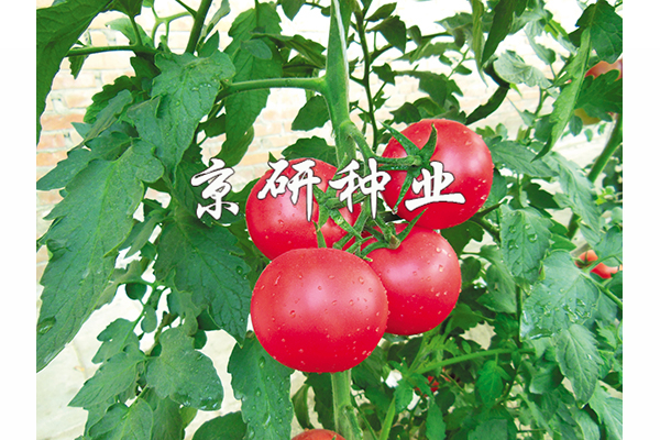粉果番茄雜交種,中熟,無限生長型,長勢強,每穗坐果數4-5個,果實正圓形,無綠肩,萼片美觀,單果重240-280克,硬度好耐儲運。具有抗番茄黃化曲葉病毒病Ty1和Ty3a基因位點,抗番茄花葉病毒病Tm2a基因位點,對葉部病害綜合抗性較好,耐熱性好,適合春秋及越夏保護地種植。栽培管理同常規,每穗4個果為宜。