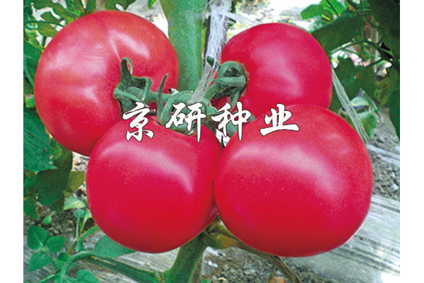 粉果番茄雜交種,中熟,無限生長型,粉紅色中大果,果實圓形,每穗坐果數3-5個,平均單果重260克,單果能達400克,穩產豐產。具有抗番茄黃化曲葉病毒病Ty1和Ty3a基因位點、抗番茄化葉病毒病Tm2a基因位點、抗根結線蟲病Mi基因位點、抗葉霉病cf9基因位點,適合春秋保護地種植。栽培管理同常規,每穗4個果為宜。