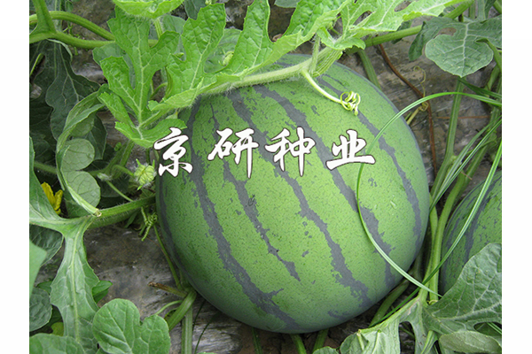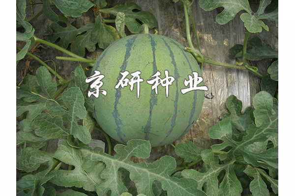 最新育成的早熟、優質、耐裂西瓜新品種。該品種果實發育期30天左右,全生育期90天左右。植株生長勢強,座果性好。果實短橢圓形,深綠底覆蓋墨綠齒條紋,有果霜,外型美觀。單瓜重6公斤左右,中心可溶性固形物含量高的可達12%以上,大紅肉,剖面均勻,不易水脫,肉質脆爽,口感佳。皮薄,耐裂,耐儲運,破損率低,商品率高。適于早熟、優質栽培及遠距離運輸。 主要栽培措施: 1. 選沙壤土種植為佳,并要求底肥充足。 2. 嫁接苗移栽時以四葉一心以上大苗為好,有利于提高西瓜坐果性。 3. 700株左右/畝,三蔓整枝,以留第二、三道瓜為好,授粉前期注意保溫、增加光照。 4. 果實成熟期不宜澆水,九成熟采摘為宜。 5. 重茬及保護地栽培,最好選用“京研”牌京欣砧木系列品種嫁接。 適應性: 適合華北、東北、華東、云南等地區保護地與露地早春栽培。北京地區露地播種3月20日-4月10日,請結合當地氣候特點、種植方式與供應期科學合理選擇最佳播種期與定植期。